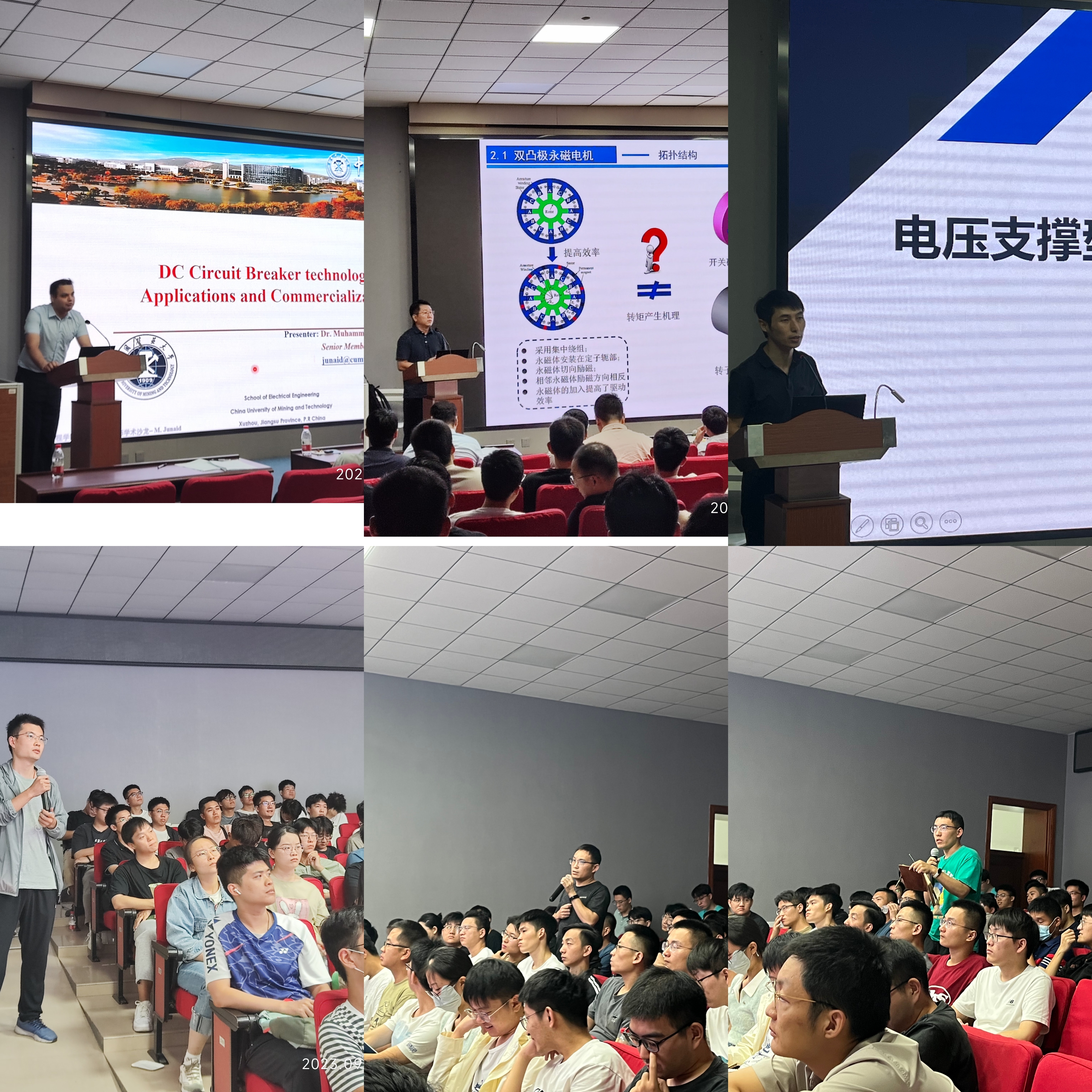 在本期学术沙龙活动中,电气安全与综合能源研究所杨龙月老师结合其在浙江大学“杰青”团队的访学经历,做了《电压支撑型储能控制技术研究与实践》的学术报告;电机及其系统研究所程鹤老师结合其在哈尔滨工业大学“杰青”团队的访学经历,做了《新型双凸极电机拓扑设计与驱动控制》的报告;高电压与绝缘技术研究所 Muhammad Junaid 老师结合其在苏格兰阿伯丁大学(University of Aberdeen)的访学经历,做了《DC Circuit Breaker technology: Applications and Commercialization》的报告。三位老师在学术交流过程中和现场师生分享了自己的访学感受和科研心得;报告结束后还分别进行了互动,与会师生积极提问,三位老师详细解答,现场学术气氛浓厚、热烈。