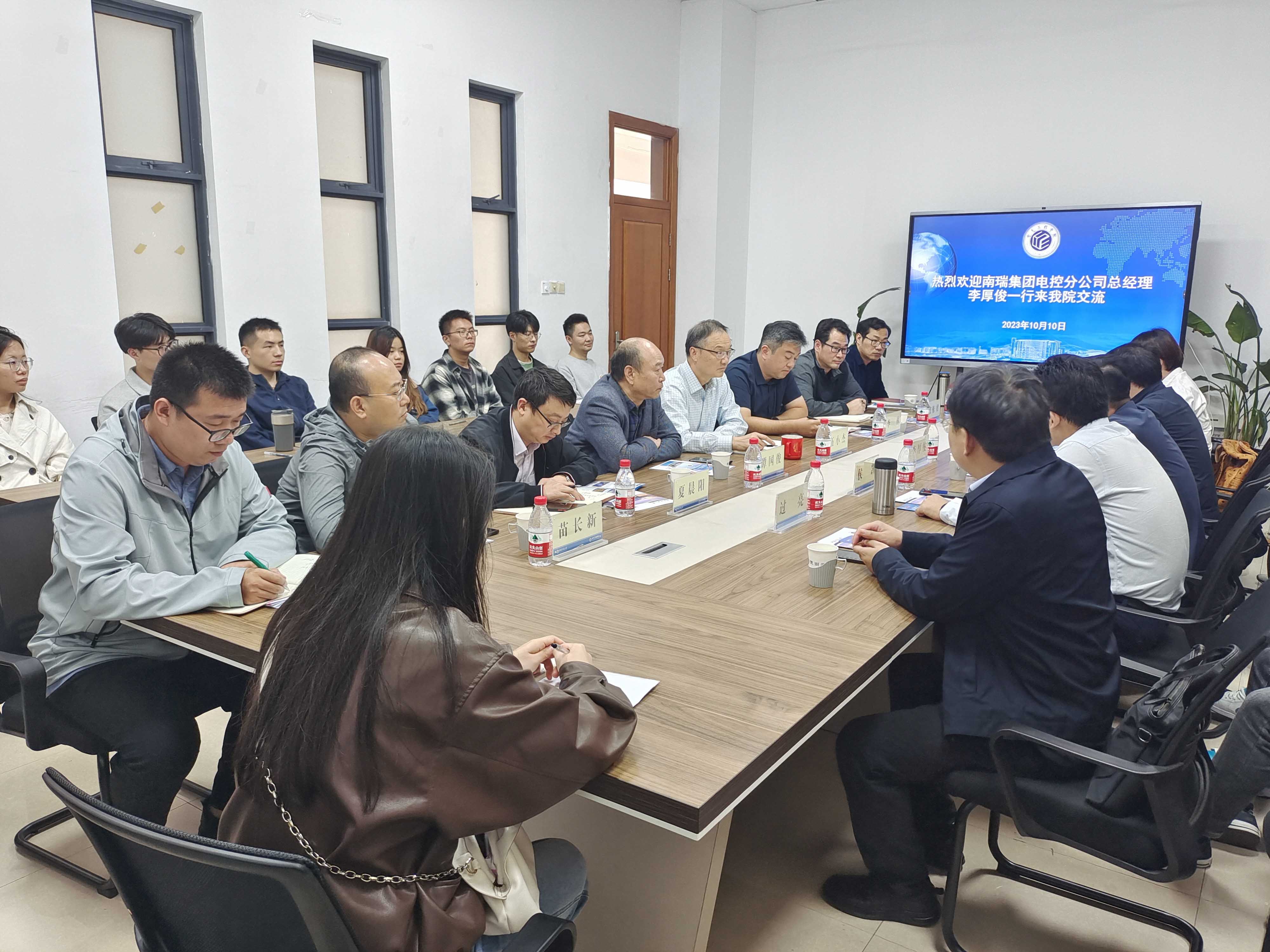 10月10日下午,国电南瑞科技股份有限公司电控分公司总经理李厚俊一行来公司走访交流,院企双方在信电楼B107会议室举行座谈会。党委书记伍小杰,党委副书记李林,副经理夏晨阳,教授委员会主任谭国俊,南瑞集团电控分公司总经理李厚俊、党委书记侯凯出席座谈会。座谈会由副书记李林主持。