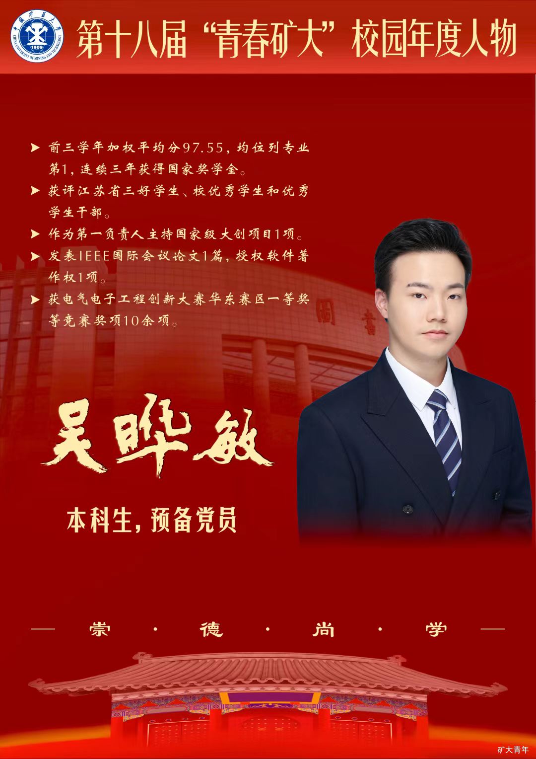 伟德国际BETVlCTOR吴晔敏当选第十八届“青春矿大”校园年度人物