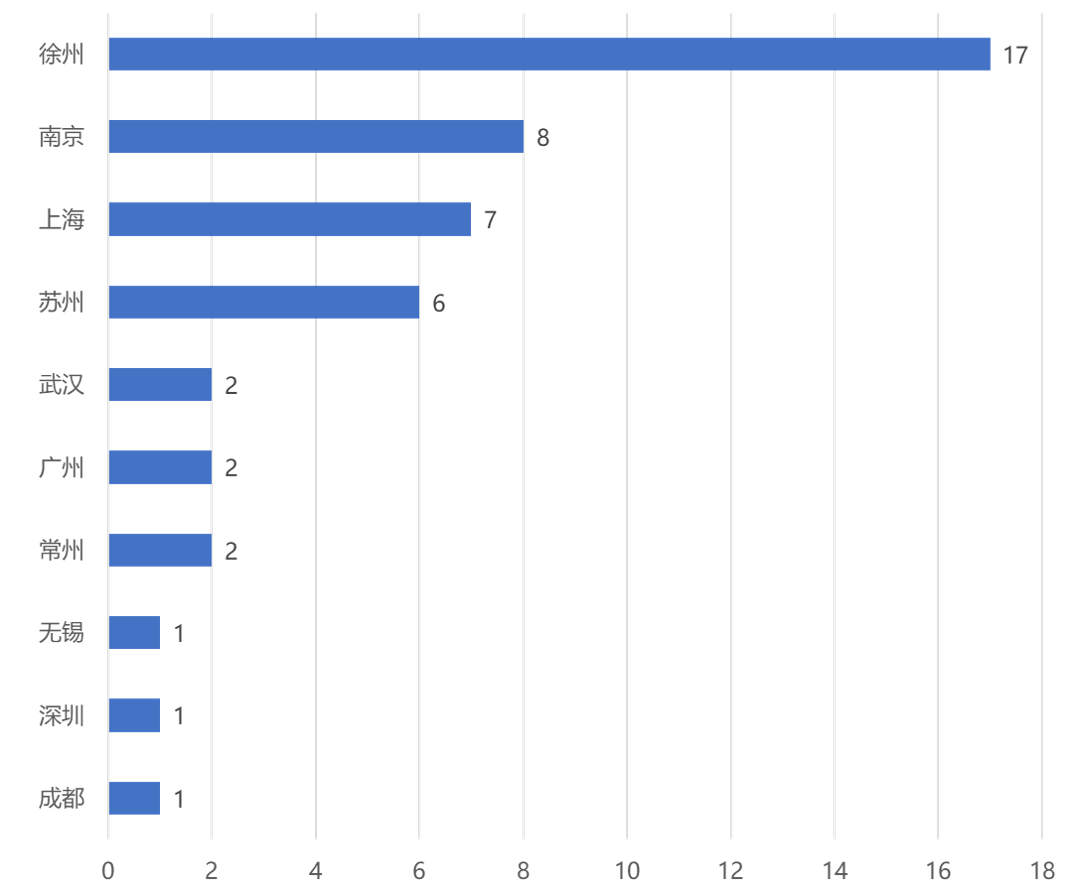 2022届研究生毕业生就业比例较高的城市分别是徐州、南京、上海和苏州。